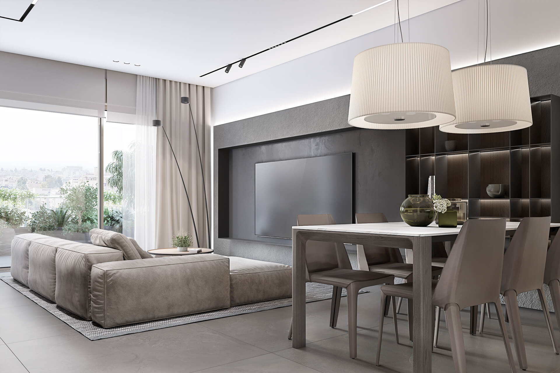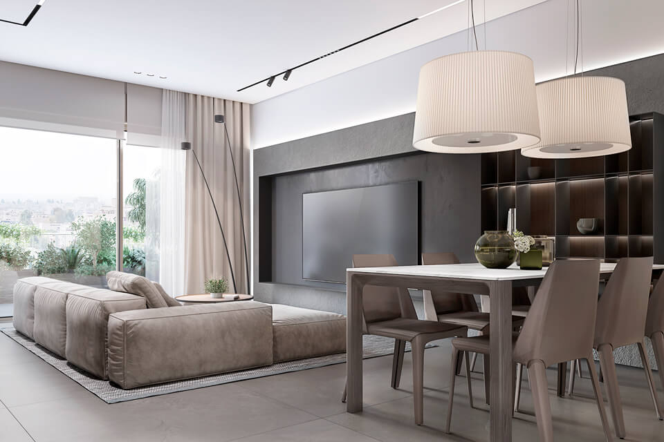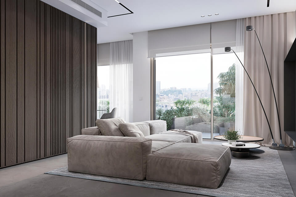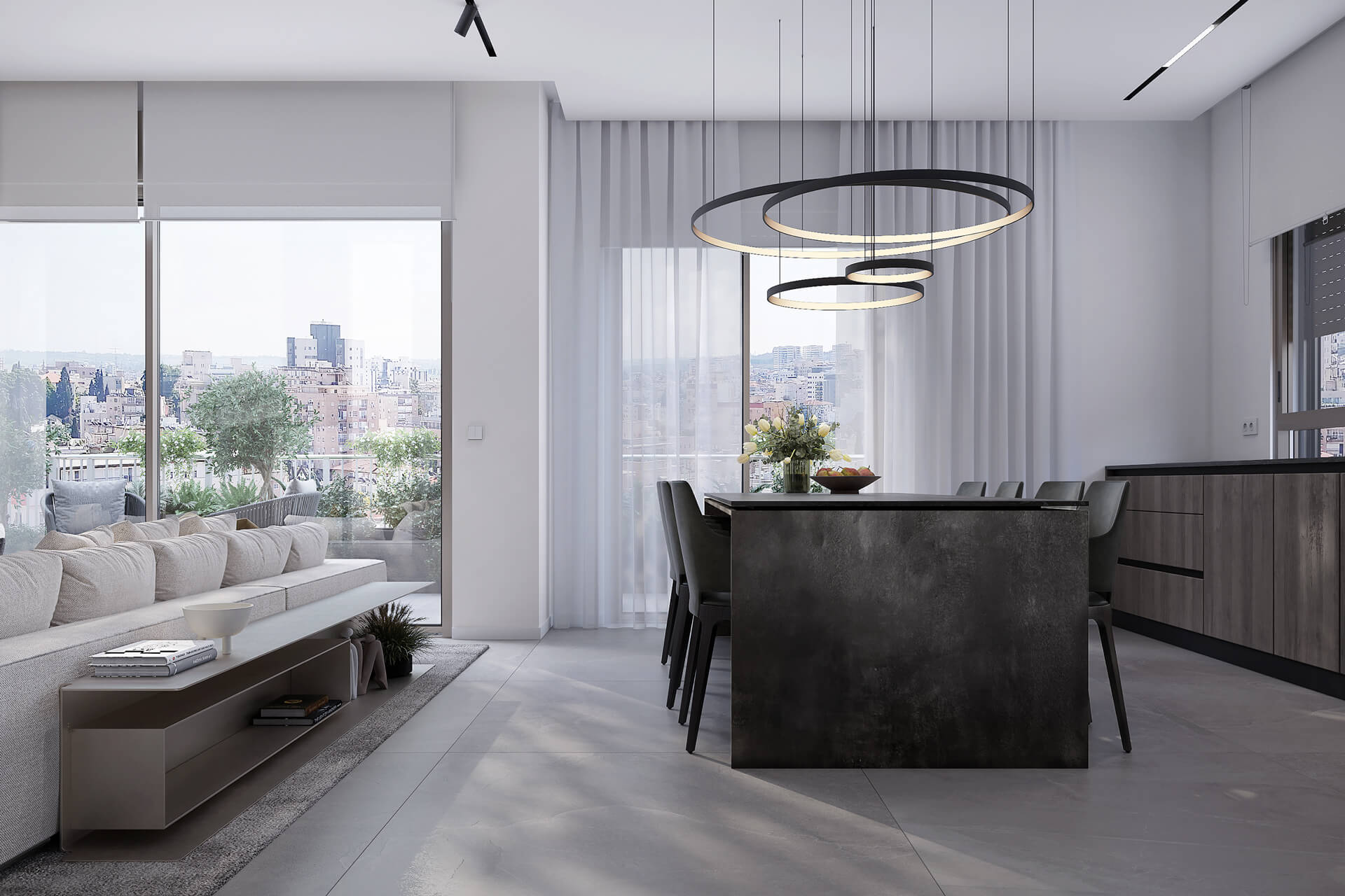 חיפויים הדירה בגרניט פורצלן במידות 100/100 או 120/60 למעט חללים רטובים ומרפסות